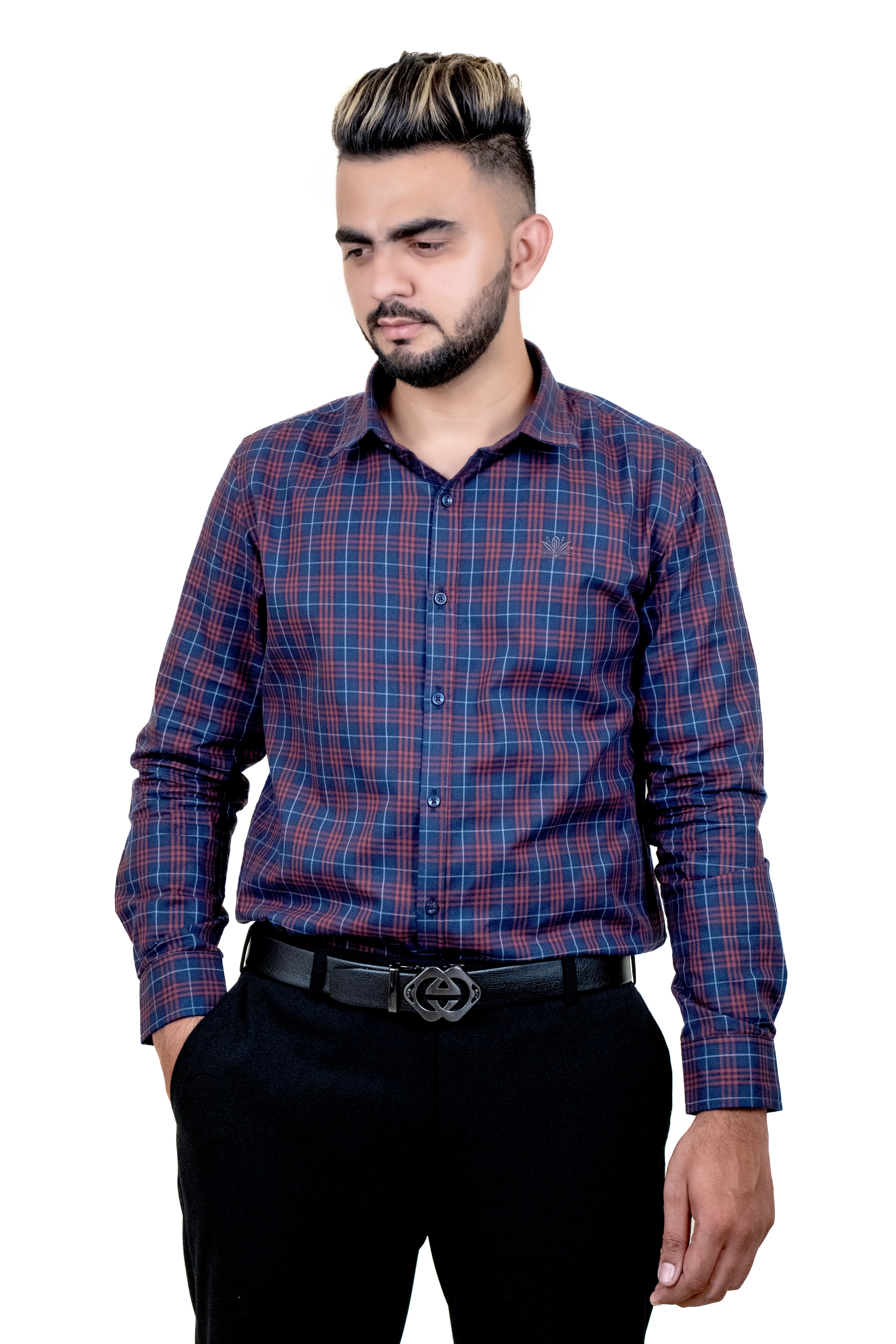 Make a smart style statement with this premium checkered shirt, tailored for a modern regular fit. Crafted from soft, breathable cotton fabric, this shirt features an elegant navy blue and maroon check pattern that adds a bold yet classic touch to your wardrobe. The sharp collar, full-button placket, and subtle embroidered logo enhance its overall appeal. Perfect for office wear, casual outings, or weekend gatherings — this versatile shirt ensures all-day comfort and style.