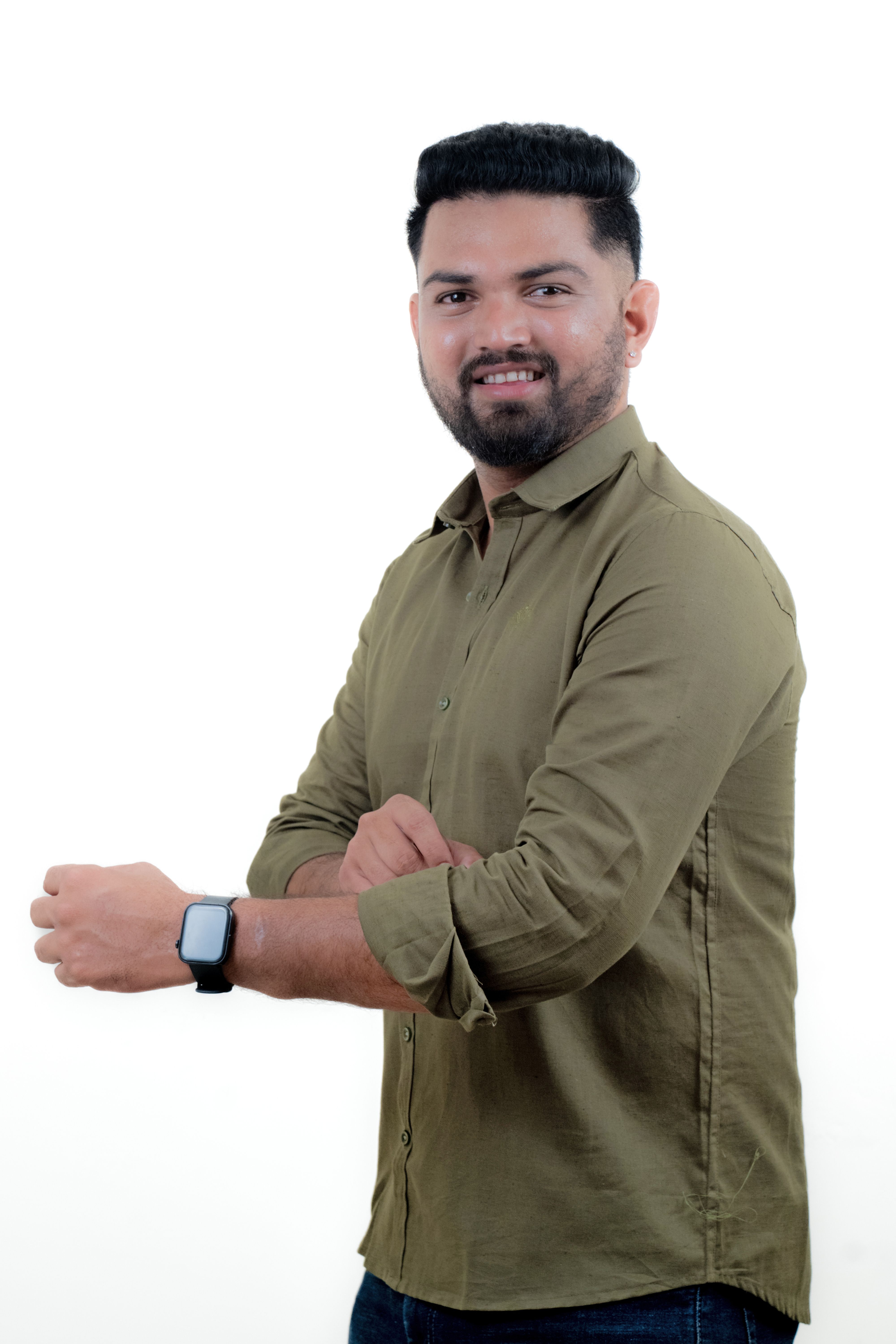 Look sharp in this olive green shirt with a classic collar and full sleeves – a perfect pick for both formal and casual occasions.