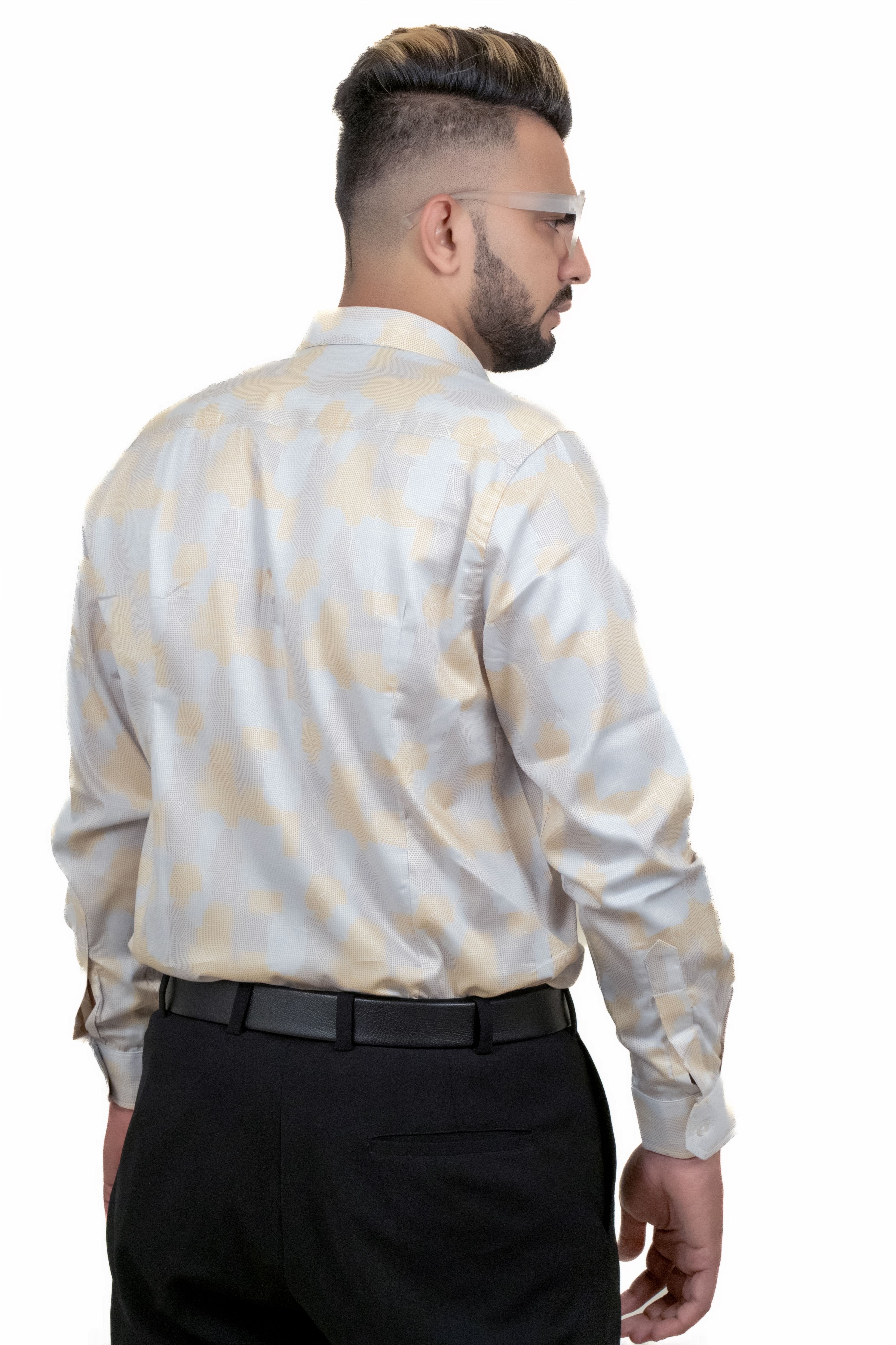 Elegant printed full-sleeve shirt with a modern geometric pattern and a premium feel — perfect for both casual and semi-formal occasions.