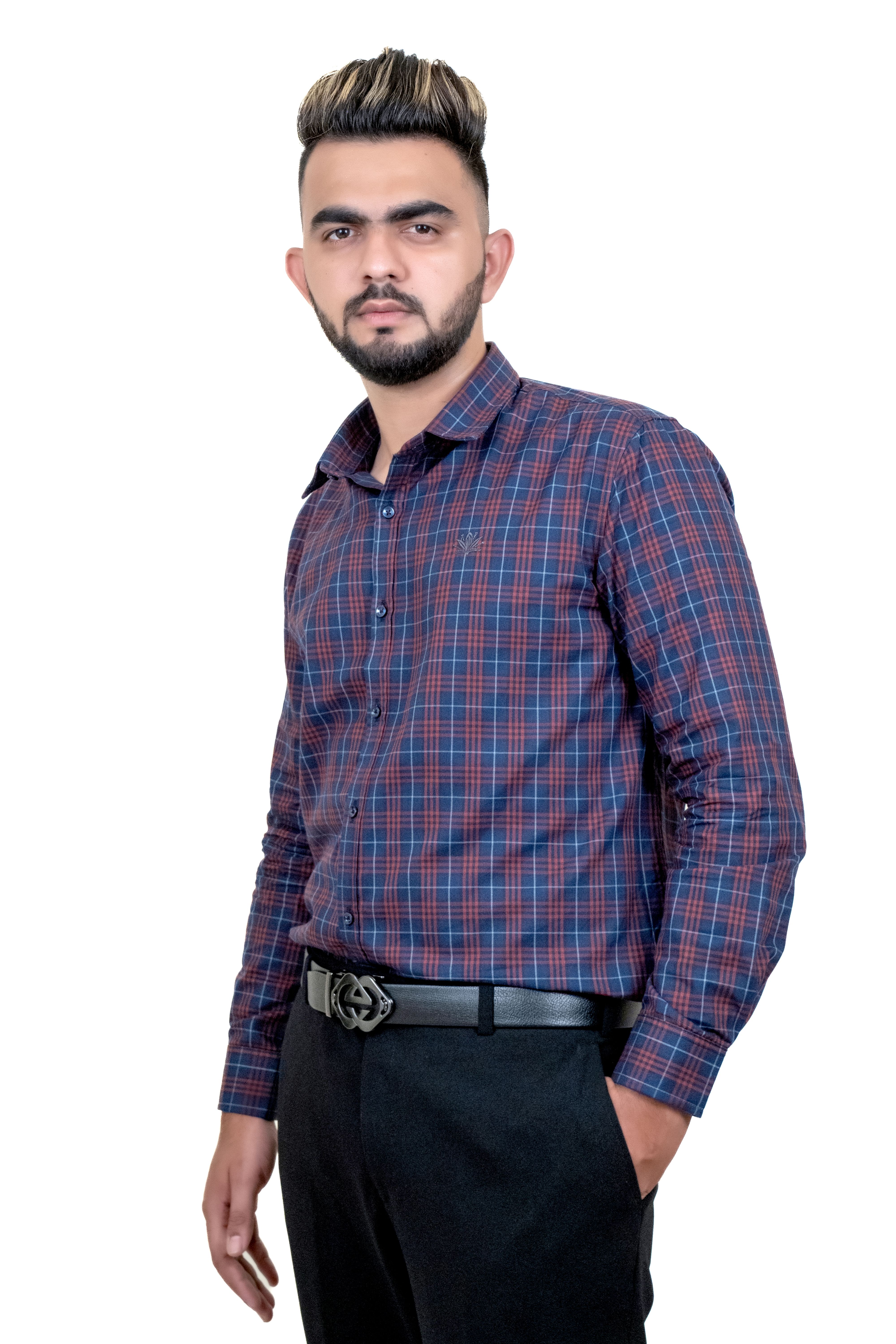 Make a smart style statement with this premium checkered shirt, tailored for a modern regular fit. Crafted from soft, breathable cotton fabric, this shirt features an elegant navy blue and maroon check pattern that adds a bold yet classic touch to your wardrobe. The sharp collar, full-button placket, and subtle embroidered logo enhance its overall appeal. Perfect for office wear, casual outings, or weekend gatherings — this versatile shirt ensures all-day comfort and style.
